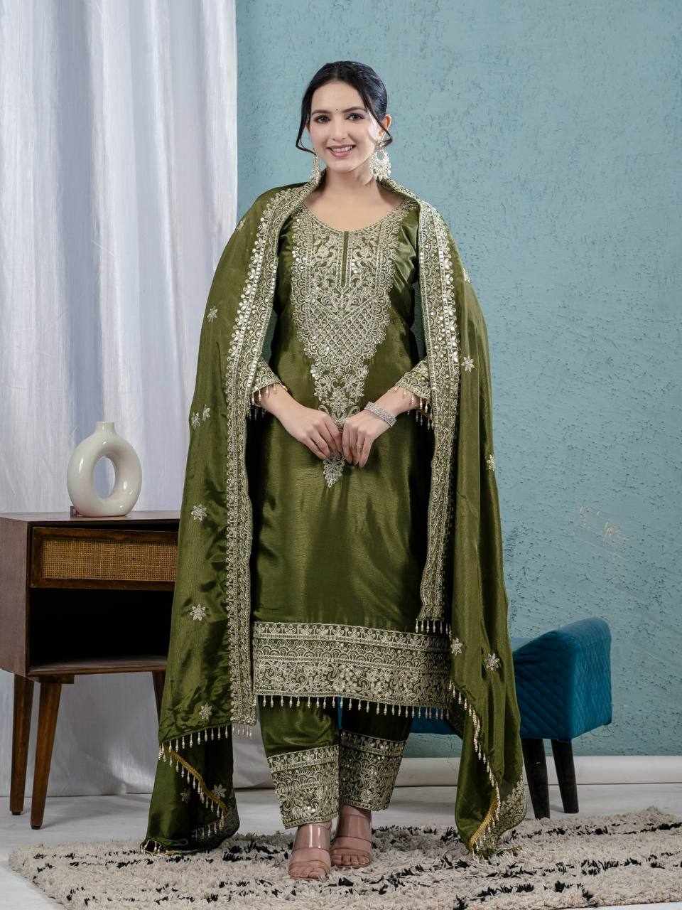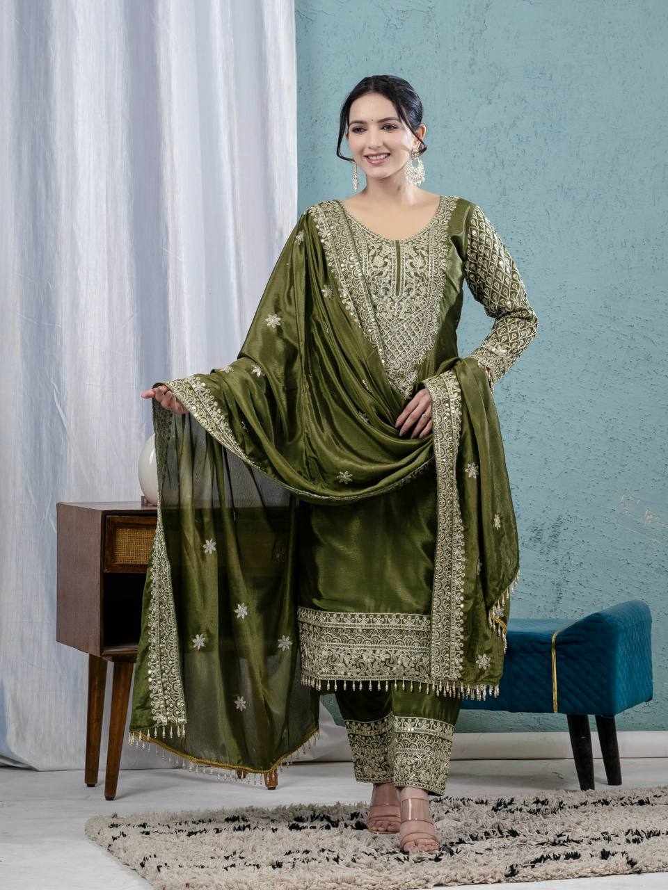 Dupatta Fabric : Pure Heavy Chinnon Silk with Embroidery Coding Sequence Work
